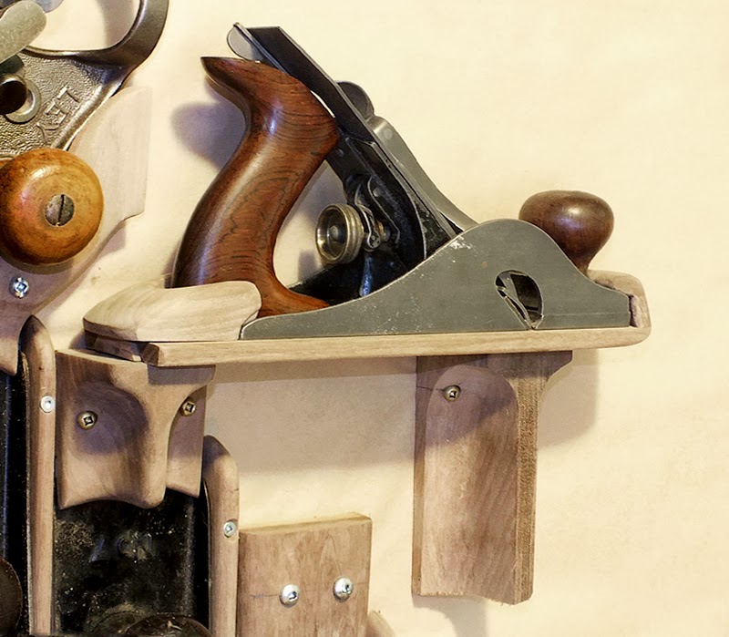 I have finally quit mucking about and jumped into "Tool Cabinet v4.0" with both feet. This is where I was at last week, with more planes already added and other mounts on the bench that are close to completion.